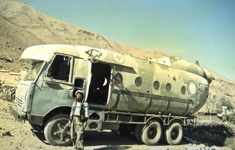 Sovietų–Afganistano karo pabaigoje šalis buvo nusėta karinės technikos laužo. Trūkstant civilinių transporto priemonių ir atsarginių dalių, vietiniai gyventojai demonstravo neįtikėtiną išradingumą. Šis „sraigtasparnis-autobusas“ yra geriausias to pavyzdys.