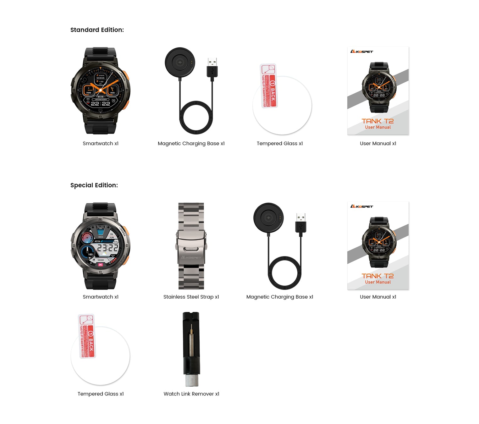 Svarbu ir tai, kad galima įsigyti dviejų versijų „Kospet Tank T2“ laikrodžius. Žemiau pateiktoje nuotraukoje galite matyti kuo jie skiriasi.