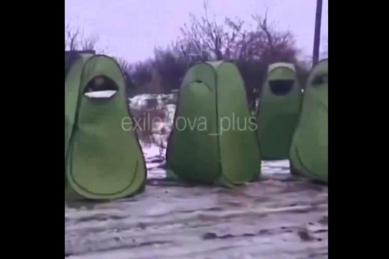 Russian military are testing some unknown technology. By the looks of it, this is a portable, individual tent meant to protect infantry from winter weather during assaults. Apparently, Russian soldiers are expected to move forward while wearing this tent on themselves.