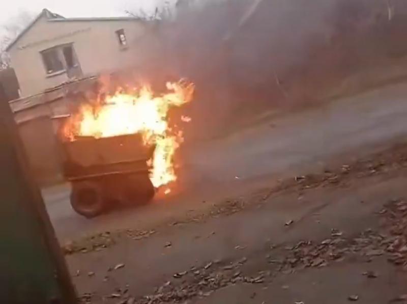 Ukrainian Rys ground robot continuing to trundle towards its destination after its cargo of fuel was hit. pic.twitter.com/rUvor8ZvBx