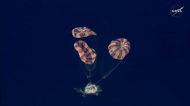 Grįžimas vyko pagal planą. NASA duomenimis, kapsulė įskrido į atmosferą 2:53 val. nakties Lietuvos laiku, o nusileidimas įvyko maždaug 3:08 val. nakties Lietuvos laiku balandžio 11-osios naktį. Nepaisant prognozuojamos audros Ramiajame vandenyne, sąlygos leido saugiai nusileisti.