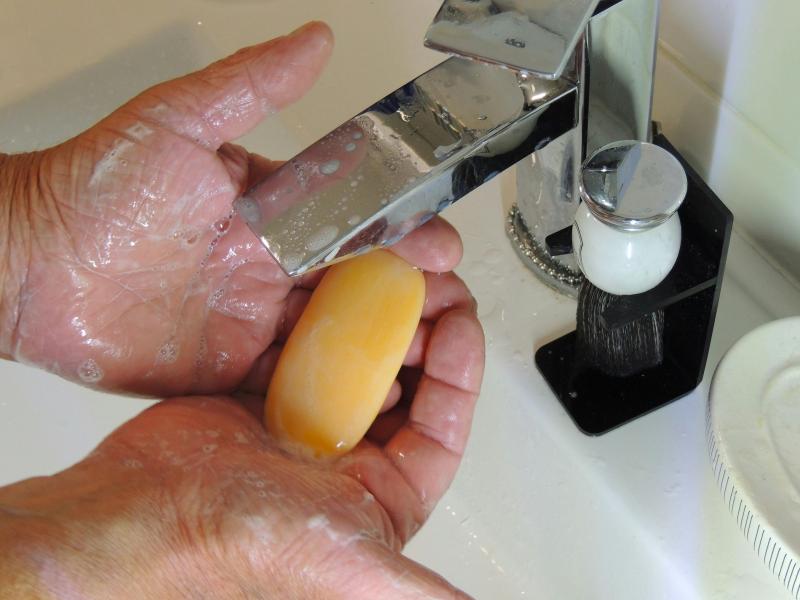 © Pexels (atvira licencija) | https://www.pexels.com/photo/washing-hands-with-bar-soap-18276543/